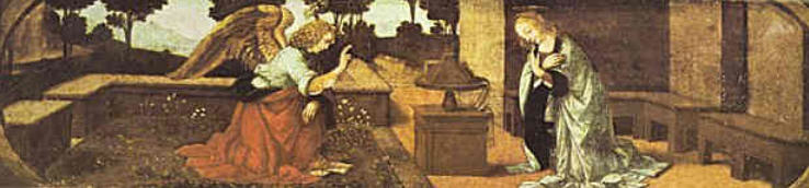 | | The Annunciation - Leonardo Da Vinci (Smaller painting) TITLE: THE ANNUNCIATION - LEONARDO DA VINCI (Smaller Painting) DATE: 1481 DA VINCI'S AGE: 29
