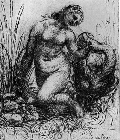 Da Vinci’s notebook shows that he was also planning a picture where Leda was sitting.